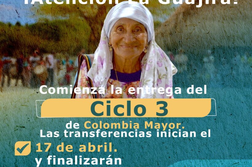 Atención a estas fechas: pagos de Colombia Mayor en La Guajira van del 17 de abril al 4 de mayo para más de 31.000 adultos mayores